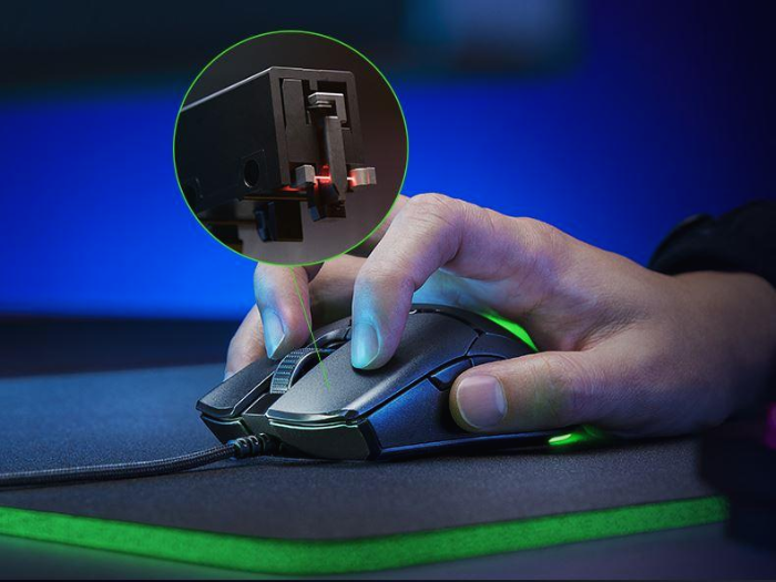 클릭부의 옵티컬(광학식) 스위치에 있습니다.